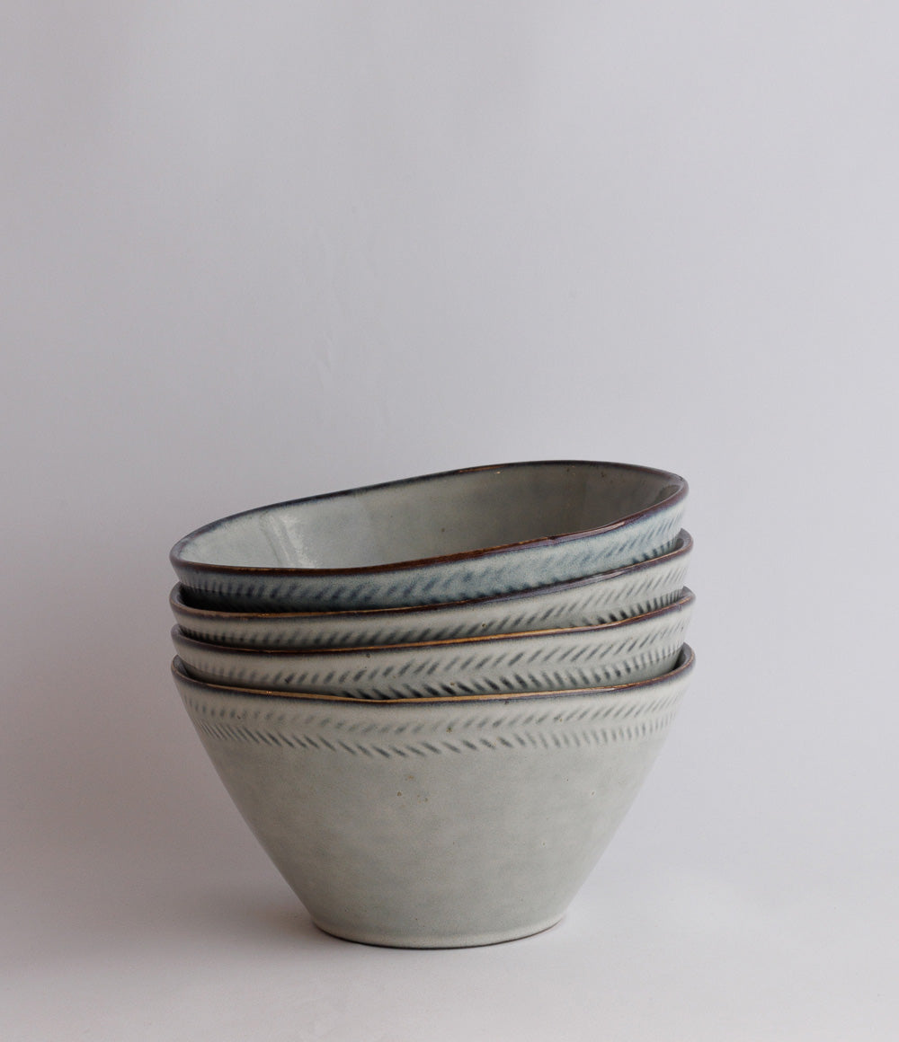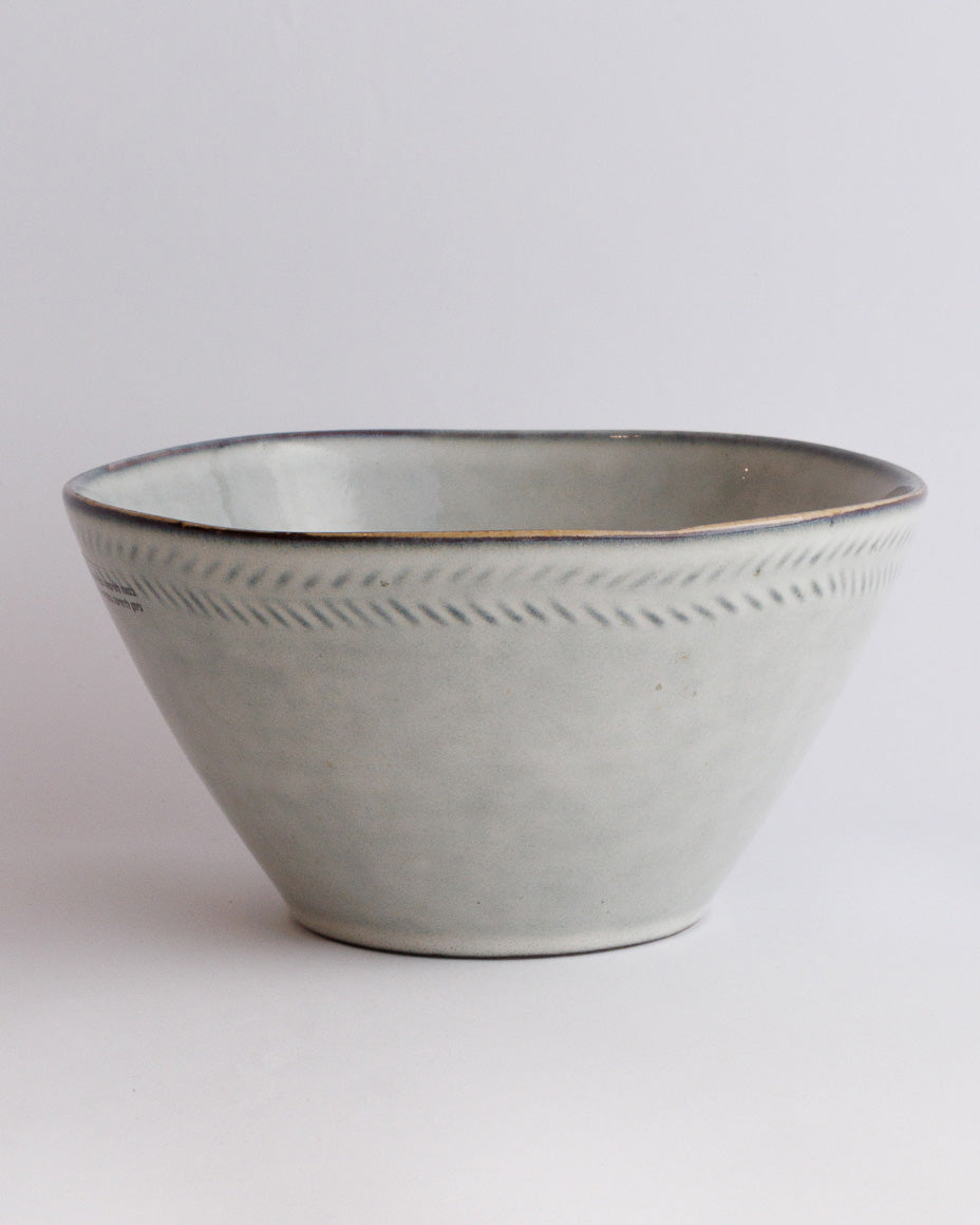 קערה קרמיקה בגימור לבן/תכלת דגם פטרן נוצה עדין המשווה לה אותנטיות