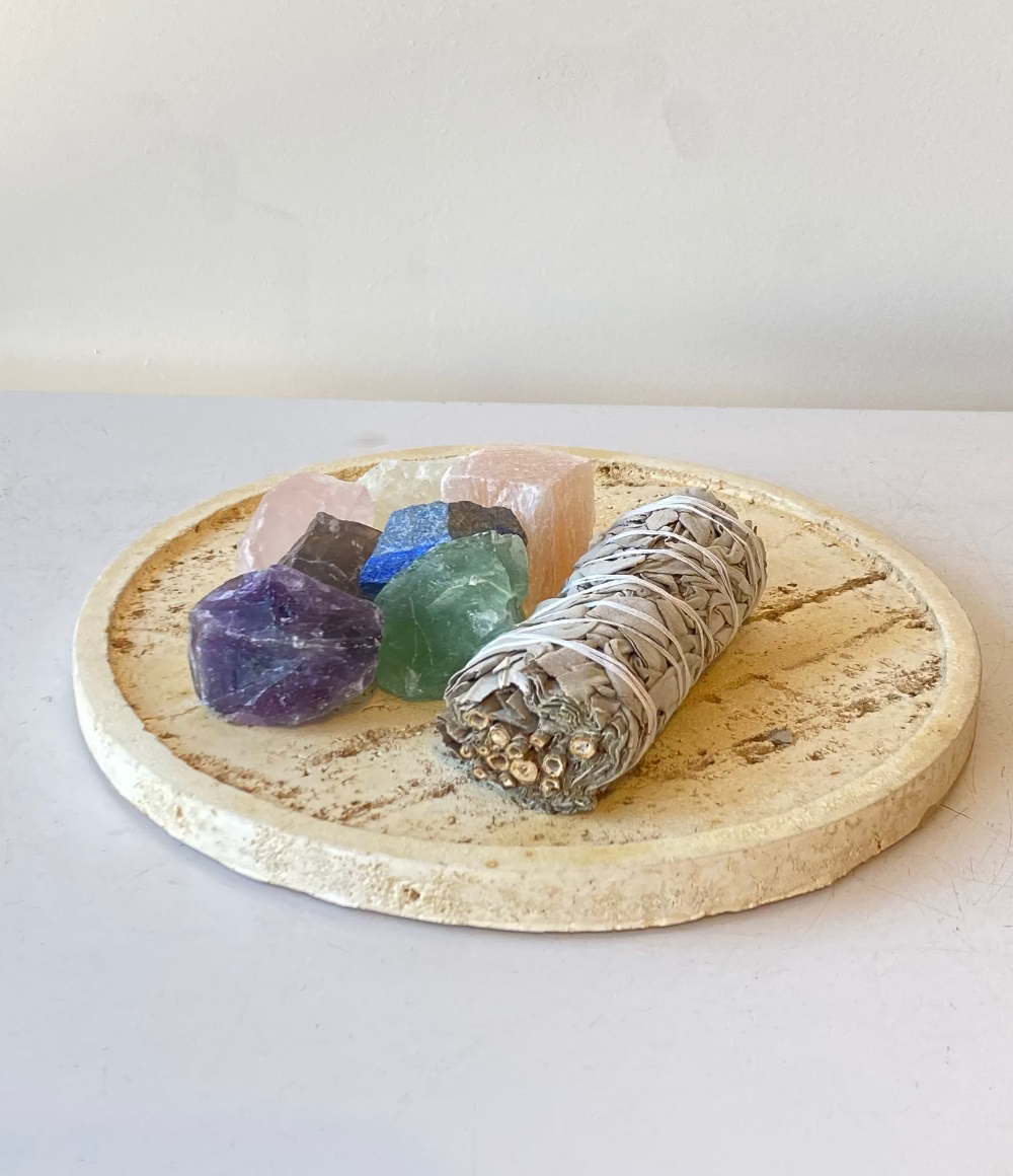 הזמנה להכניס לחייכם אזון, הרמוניה ורענון אנרגטי, קיט של אבני קריסטל אנרגטיות ומקל מרווה לטיהור הגוף, החלל והקריסטלים.