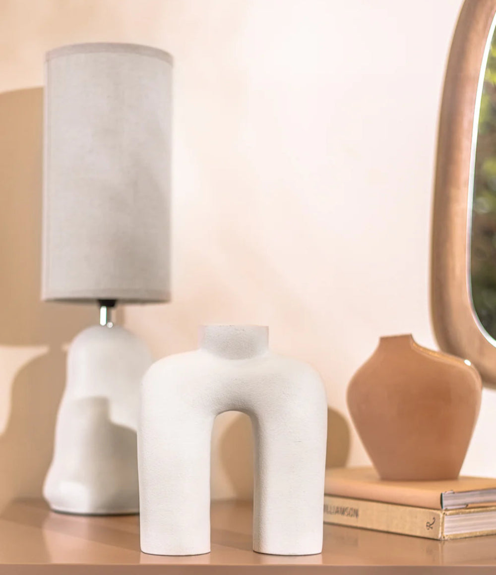 אגרטל מתכת פורסט בצבע לבן. אגרטל שהוא אלמנט פיסולי