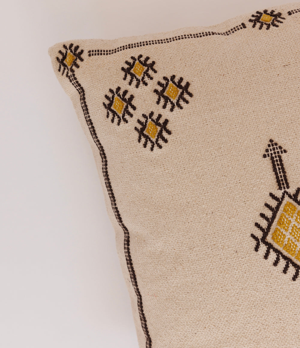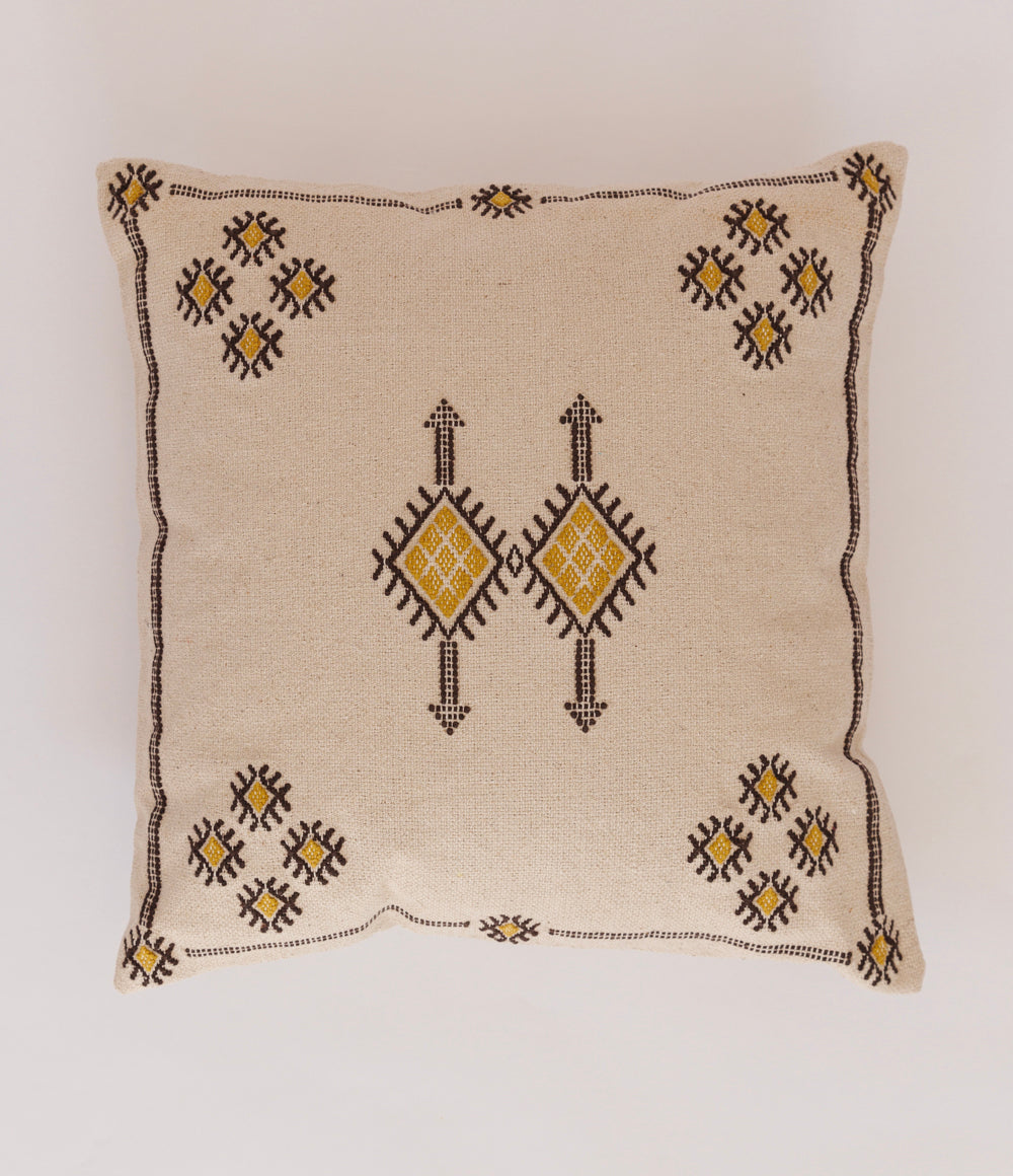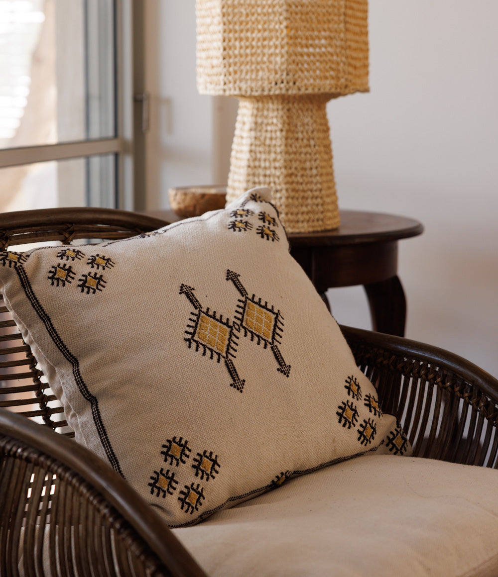 כרית 50/50 רקמה עבודת יד בסגנון מרוקאי 100% כותנה גוון שמנת