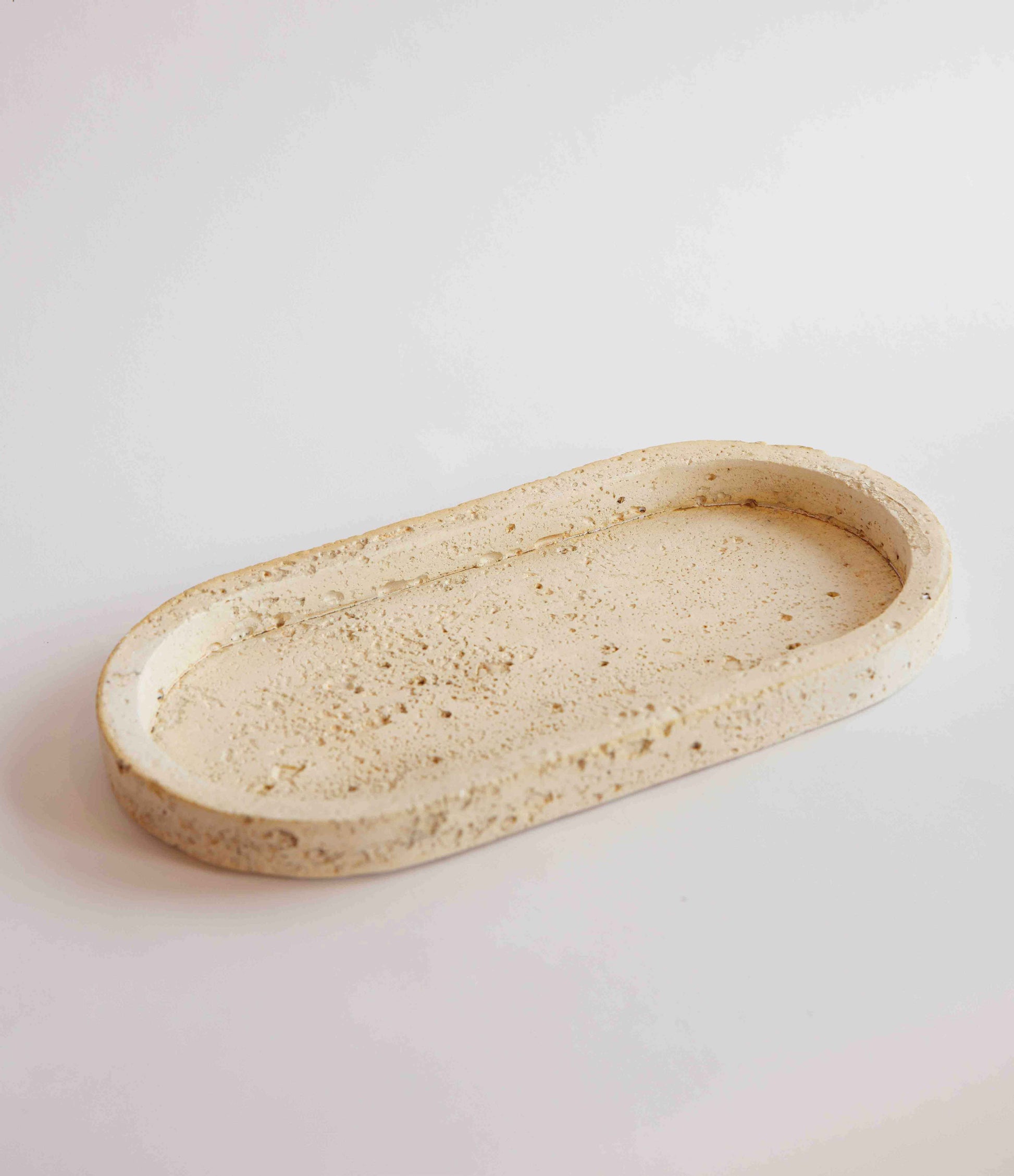 מגש אובלי דמוי טרוונטין לסידור, נרות ,מפיצי ריח ,פמוטים