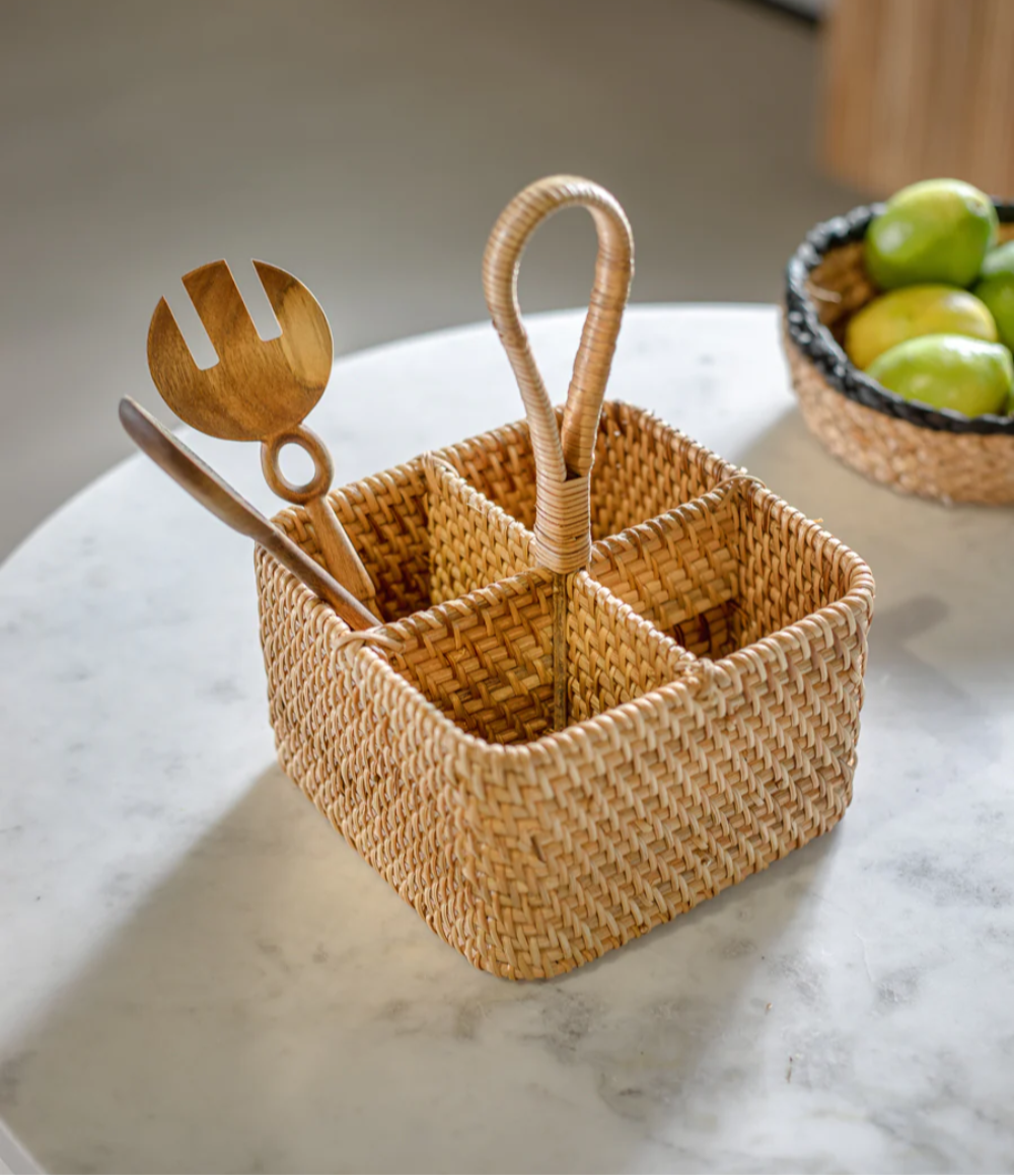 סכומון ריזורט בגוון טבעי. מחזיק סכו"ם אלגנטי מעוצב 4 תאים ולולאת אחיזה. כלי אירוח קלאסי בקו צעיר.