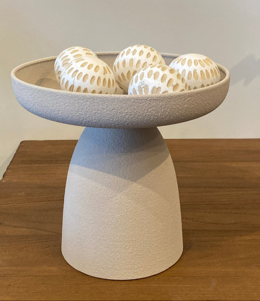 , מגש על רגל בגימור טבעי בגוון אבן כאלמנט עיצובי במטבח או על שולחן פינת אוכל הרגל המוגבהת מוסיפה טוויסט מודרני. קטן -25/25 גדול 29/30