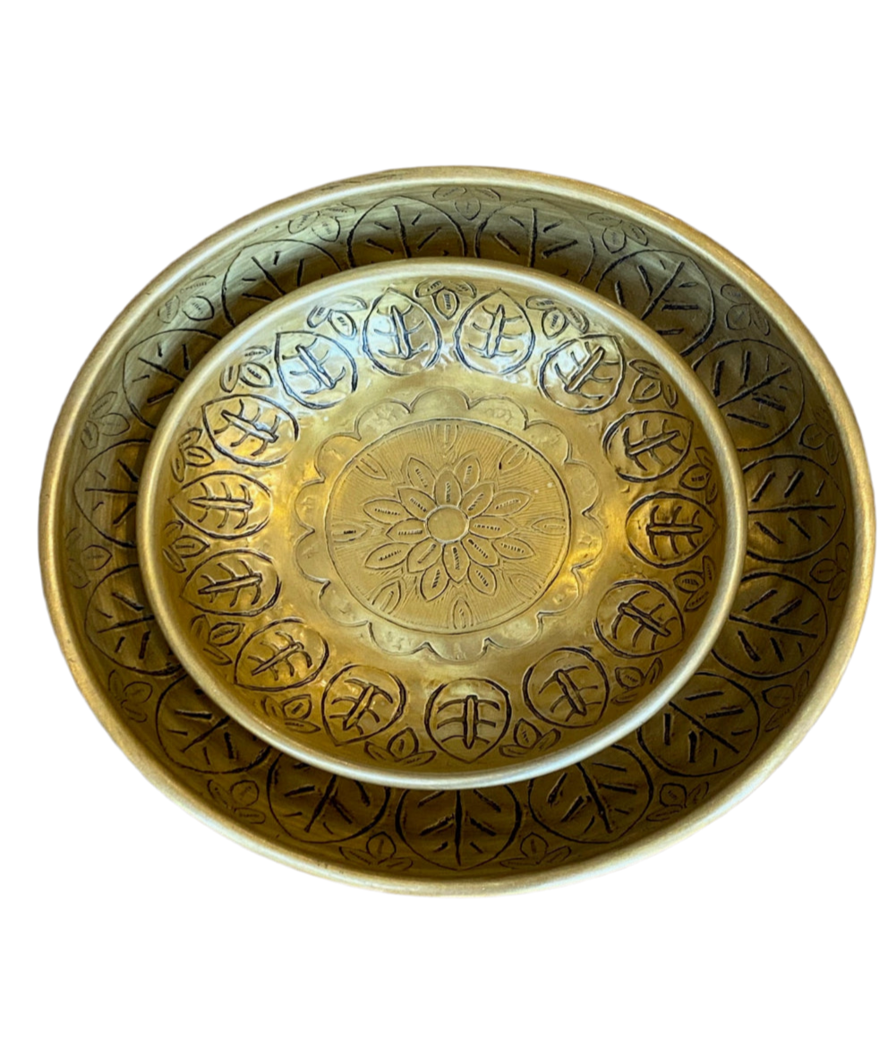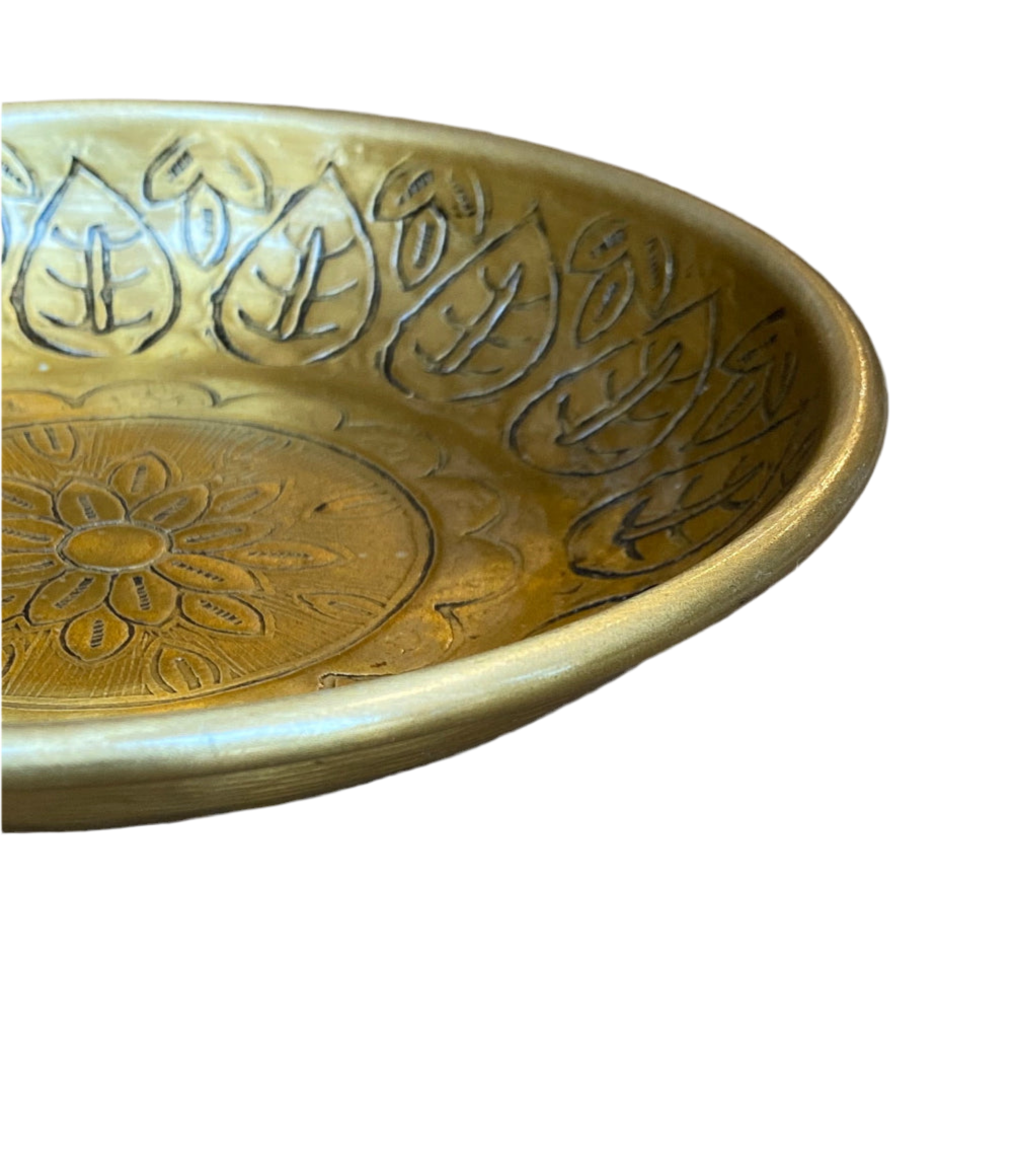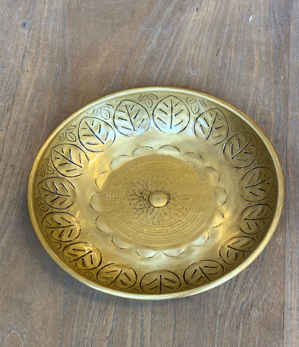 קערה אתני מתכת מרוקעת בגוון זהב מתאים להגשת פיצוחים או לעיצוב על שידה לשים תכשיטים או למפתחות , קיים בשני גדלים