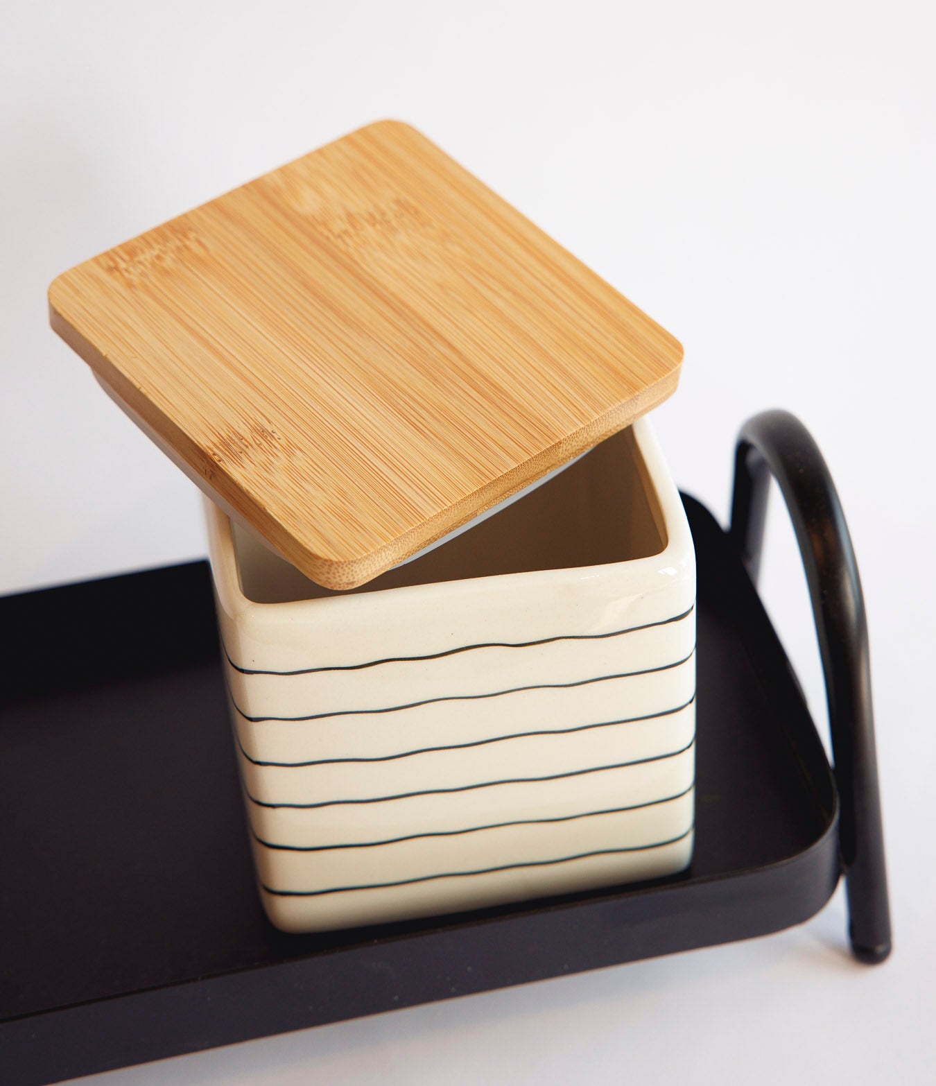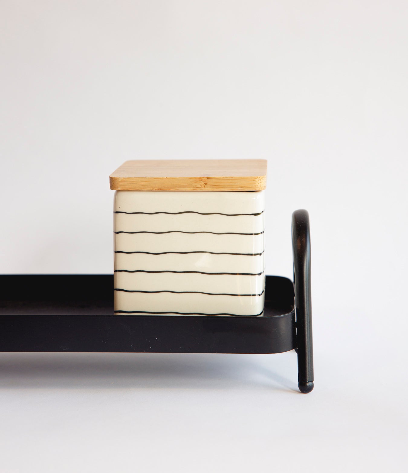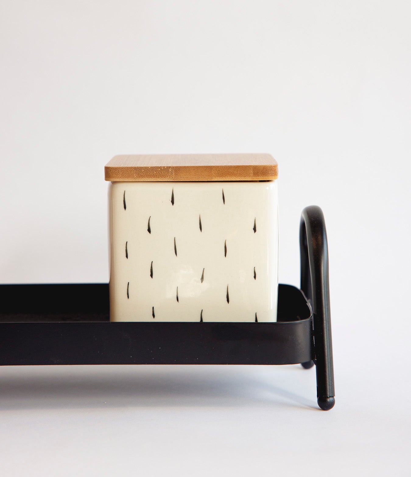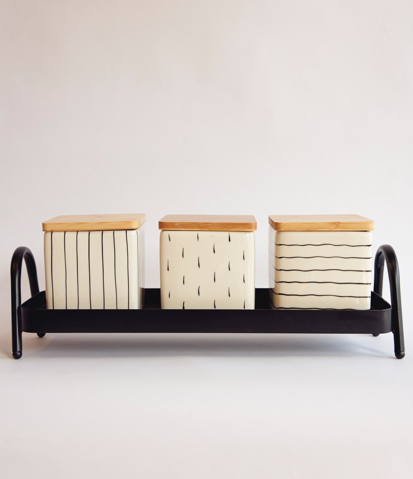סט אחסון מקרמיקה שלישיית קופסאות קרמיקה מעוצבות בסגנון מודרני נקי, עם מכסי עץ טבעי וטבעת סיליקון לאיטום ושמירה על טריות. מושלמות לאחסון קפה, תה, סוכר או כל פריט קטן אחר שילוב מדויק של פונקציונליות ואסתטיקה למטבח מעוצב