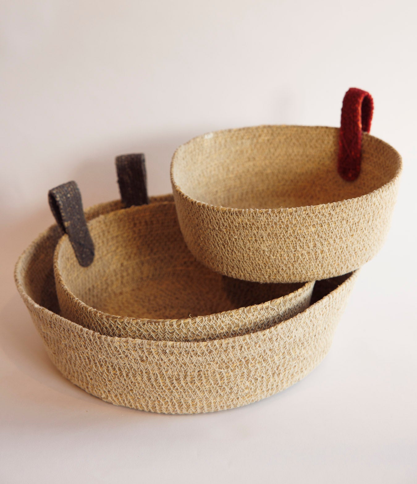 סל סהרה קלוע סי גראס עגול וידית אחיזהסלסלה ייחודית להגשה במרכז השולחן ללחמים או לאחסון פריטים קטנים במבואת הכניסה מגיע בשלושה גדלים לבחירה