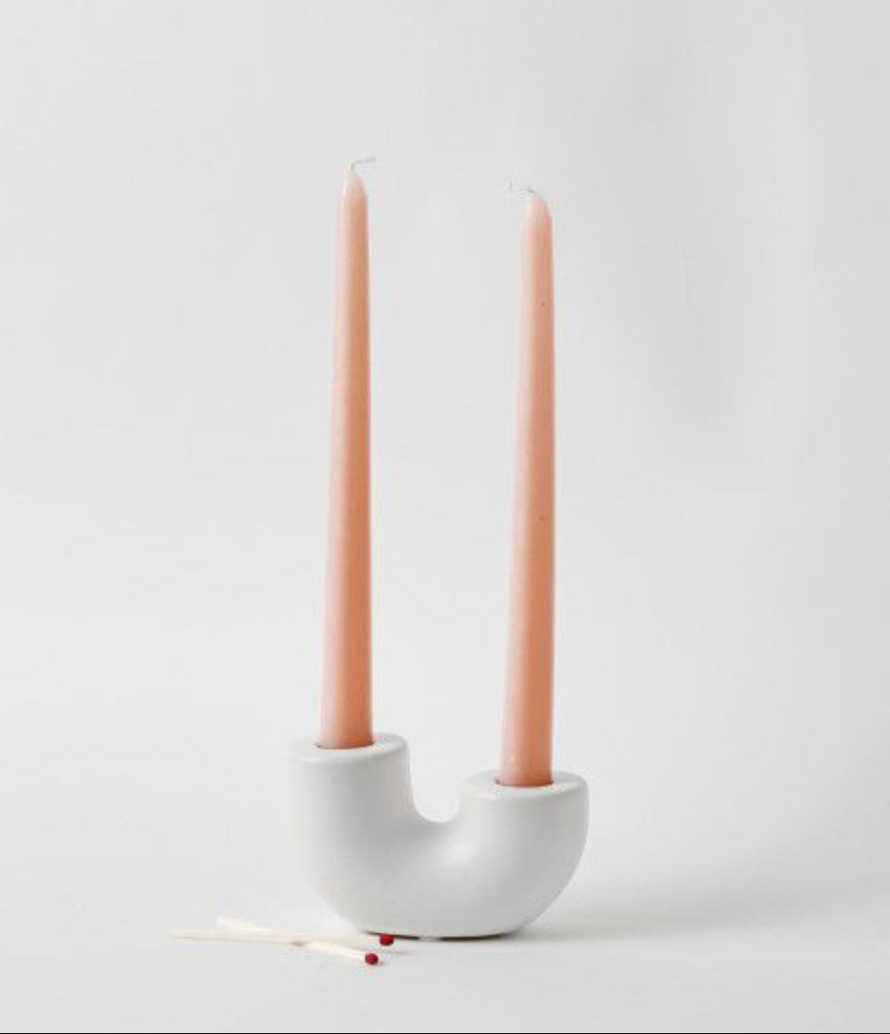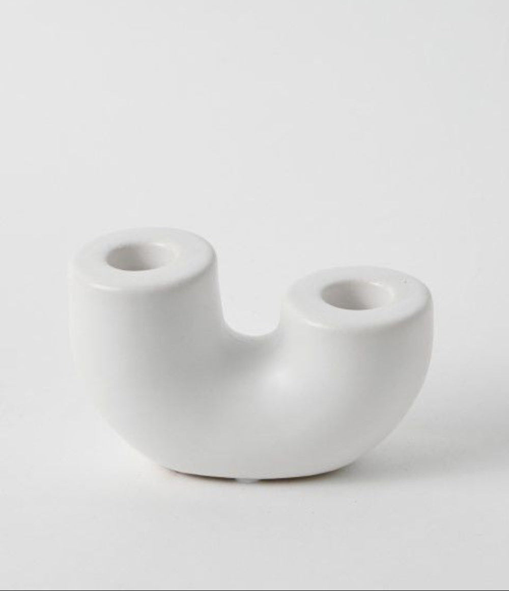 פמוט חרס נורדי זוגי, מתאים לנר גבוהמהמם לשבת / עיצוב שולחןרוחב 12 גובה 7 ס"מ