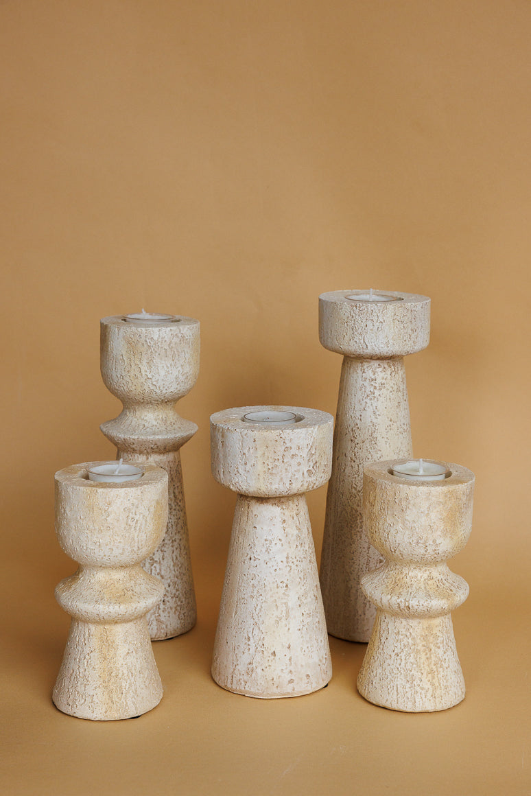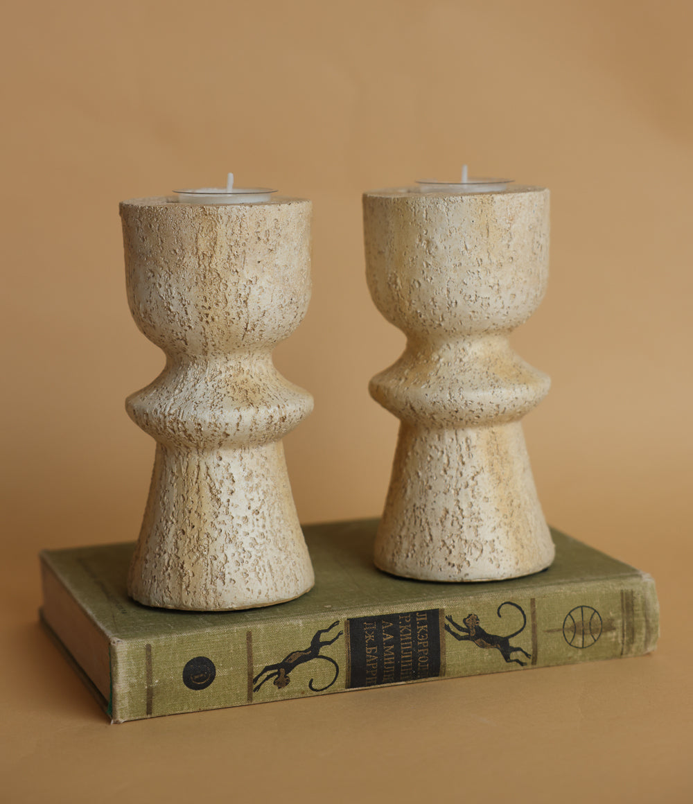 פמוט דמוי אבן טרוונטין לטילייט הטקסטורה הגסה מעניקה מראה ייחודי שמוסיף המון אופי לחלל