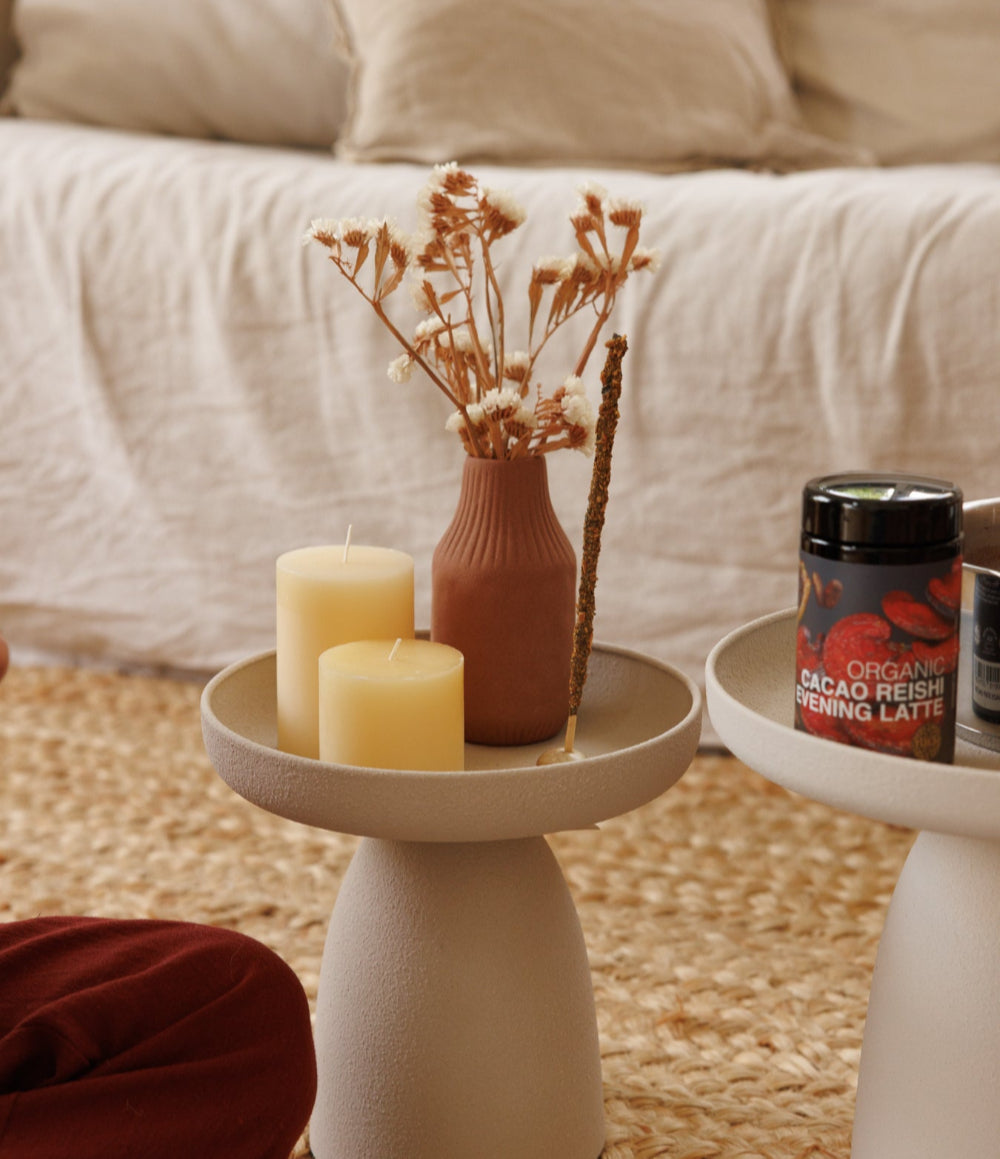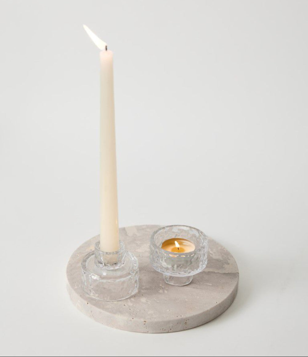 זוג פמוטים זכוכית רקוע דו צדדימתאים לנר אצבע ונר טי לייט