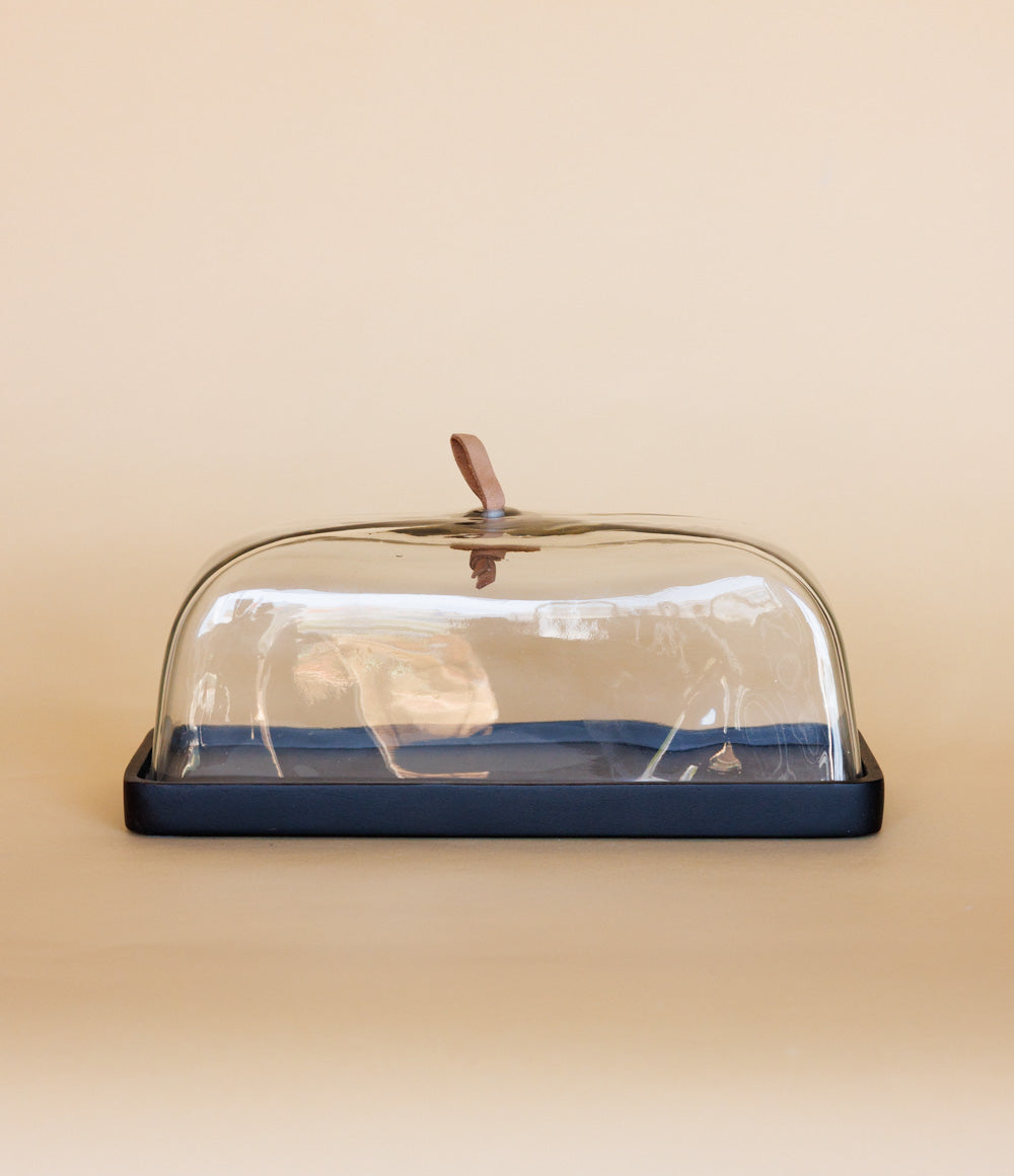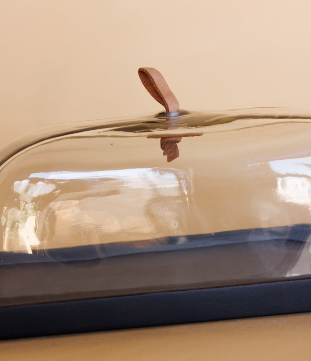 פעמון עוגה זכוכית בשילוב מגש עץ .מתאים לעוגות מאפים לעיצוב השולחן או על אי המטבח