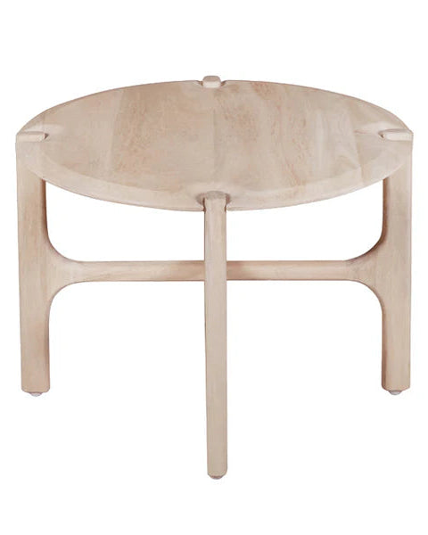 שולחן צד בגוון עץ אגוז. שולחן מעוצב פלטת עץ עגולה הנישאת בסיס רגלי עץ מוצלב.שולחן בעיצוב אלגנטי המשתלב בהרמוניה במרחב.